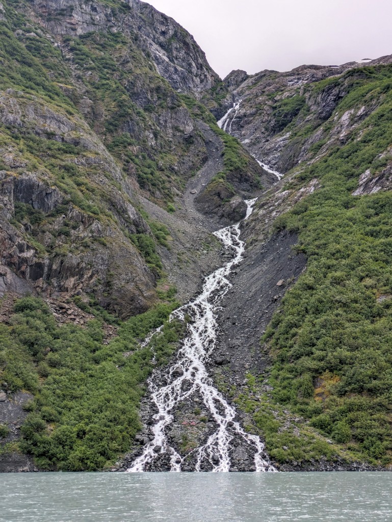 Just after the AWCC, a left will take you to Portage Lake. Here we took a 1 hour cruise that brought us right in front of Portage Glacier. Along the way, the on-board ranger talked about the history of the glacier and the area. She also pointed out waterfalls – which there were many – that are by products of other glaciers in the area. The ranger also had a collection of historical maps, artifacts, and images available for us to peruse during the ferry ride.