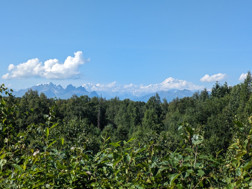Just before reaching the town, we started to see this large snow covered mountain in the distance. As the driver, I started to look for places to pull over and enjoy the view. An about 5 minutes before we reached the Talkeetna, we found the perfect spot. Called The Overlook on Google maps (see attached map), this turn off is on the left side of the road. By the time we reached this area, I realized that the mountain we were seeing in the distance was probably Denali.