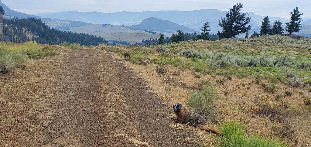 What I was hoping to see were bighorn sheep, so during my next hike to the Yellowstone River Picnic Area Trail, I spent the whole 3.5 mile hike searching the rocks for the sheep. While I didn’t encounter any sheep on this trail, I did see many a marmot, which I enjoyed watching sunbathing and scurrying away. This trail followed the curves of the canyon, and the sight of the Yellowstone River below was beautiful, as were the waterfalls along the way.