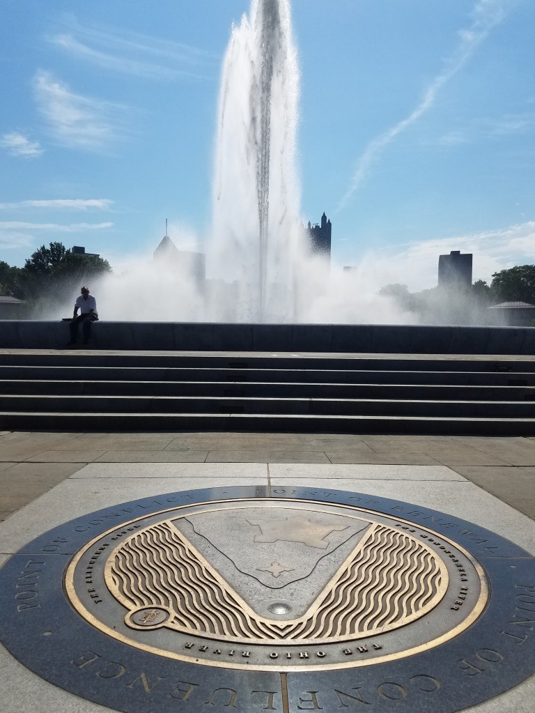 Pittsburgh is built around the junction of 3 rivers: the Monongahela, Allegheny & Ohio. Jutting out into the junction is Point State Park. Here you have a view of all the different sides of the city — up the hill to Duquesne Heights on the South Shore and over to the PNC stadium on the North Shore. Point State Park also has its own history; the granite outline in the grass marks the location of Fort Duquesne. While the fort is no longer there, the Fort Pitt Block House (built in 1764) still stands. This building has served as a defensive stronghold, a trading post, and even a tenement building.
