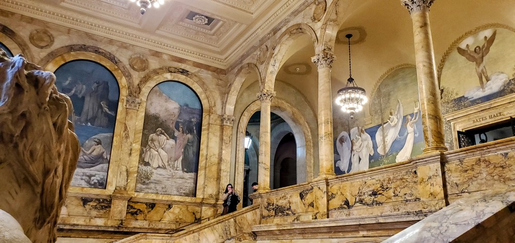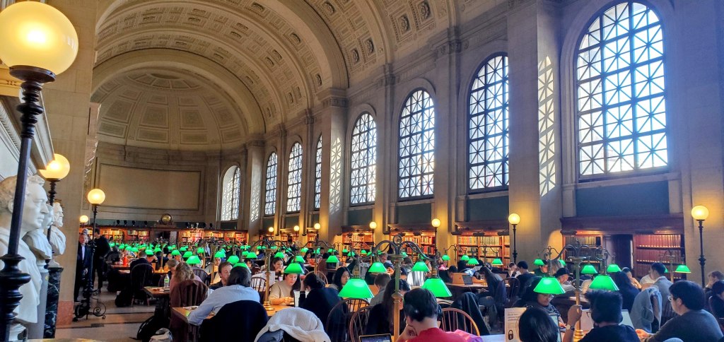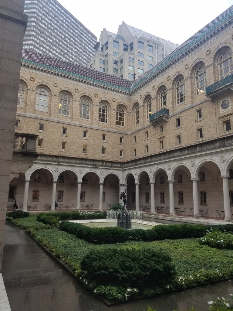 On the 2nd floor of the McKim building is Bates Hall, a grand reading room with 50 foot high vaulted ceiling and original oak tables from the late 1800s. What I love about this space is that it is as much for the locals who are busy studying (or in my case grading) as it is for the tourists. The same can be said for the library’s courtyard. The courtyard connects to a small cafe and the McKim building to the Johnson building, so it’s natural to find people eating a picnic lunch, reading, and enjoying the central fountain and plantings.