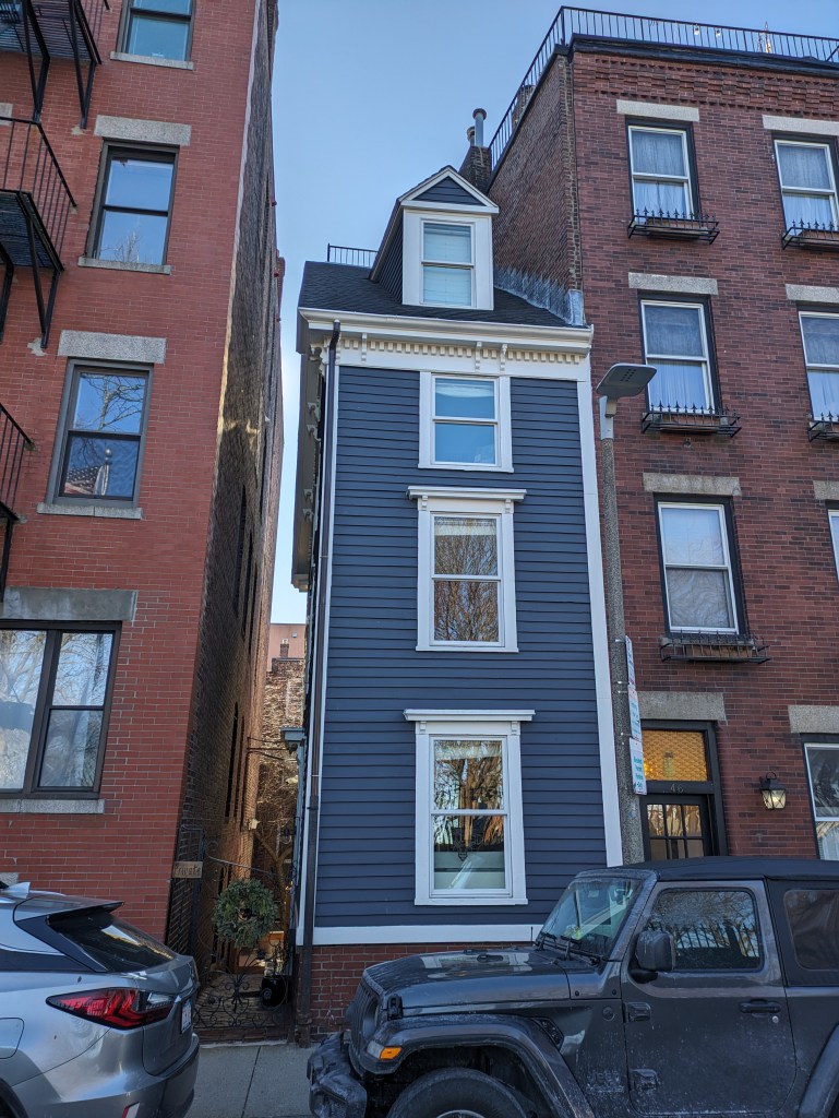 Also, while here, don’t forget to look across the street at the Skinny House, which is only 10 feet wide. While there’s a legend that the house was built out of spite, the architectural history of the house tells a different story. It seems that the small alleyway that is on the left side of the house is the reason why the house still exists. These small alleyways are some of my favorite elements of walking around Boston, so this part of the story is really cool.