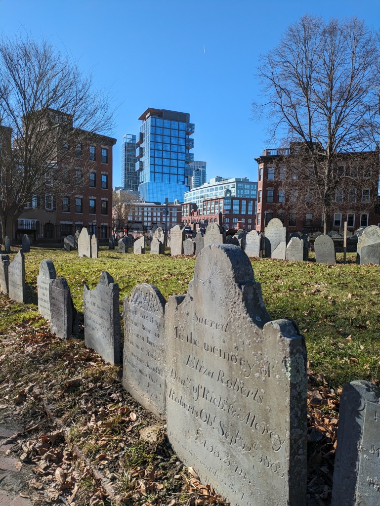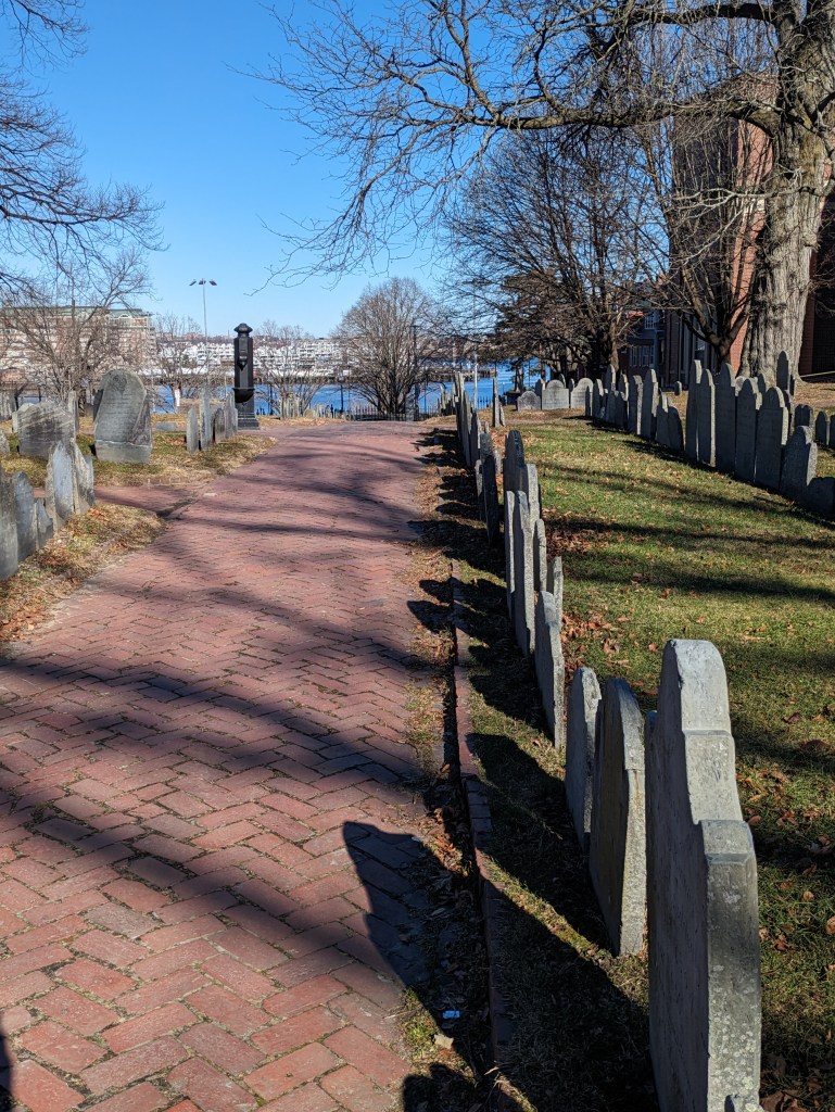 Also be sure to follow the Freedom Trail up the hill from Old North Church to Copps Hill Burying Grounds. This was Boston’s largest colonial burying ground. With gravestones as old as 1659, it is the 2nd oldest cemetery in the city (after King’s Chapel Burying Ground). The plaques around the cemetery discuss captains and freemen who are buried here. Because it is set on a hill, there’s also a view of the harbor and the Zakim bridge.