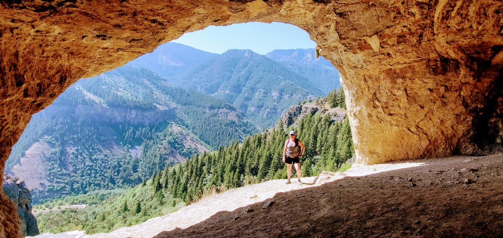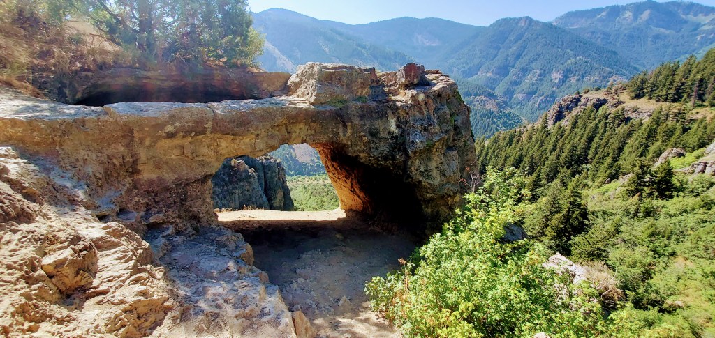 During the summer months, the best time to hike is the morning, so I started my day hiking the Wind Caves trail just north of Logan, UT. The 4 mile out and back hike winds up a mountain in the Uinta-Wasatch-Cache National forest to a unique set of arched rock formations. Because these outcroppings have holes at the top and sides, the wind is able to flow through the spaces. The holes also allow for sun to filter through and make the color of the rocks come alive. From the rock ledges are lovely views of the other mountains in the range.