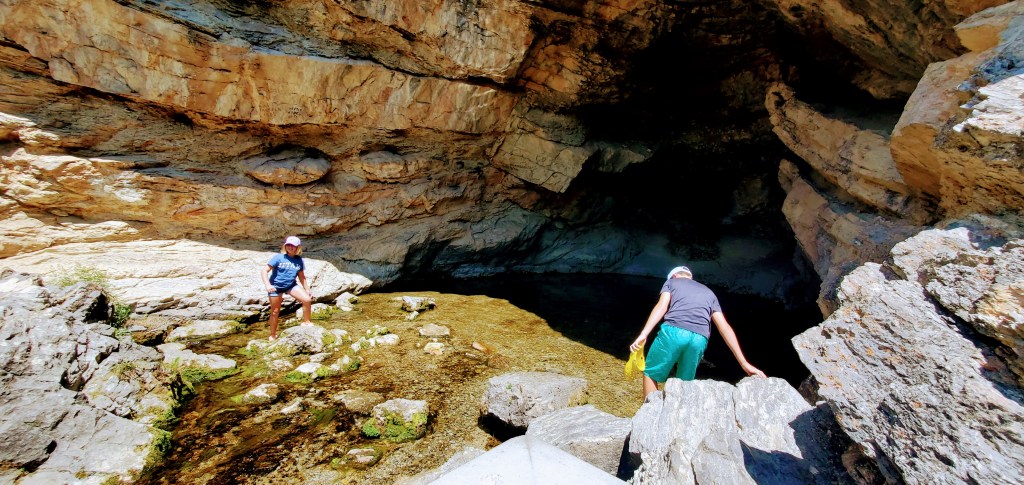 Heading to Bear Lake took me along Logan Canyon’s Scenic Byway (rt 89), and as the name suggests, it is a beautiful drive. When I saw opportunities to pull off and enjoy the natural formations, I took advantage of those. One of these was Ricks Spring. Ricks Spring is a karst spring, with water transported through underground caverns. This means that the water bubbles up from the center of the cave before flowing out into the nearby river. After the dusty wind caves hike, it was a pleasure to take off my shoes and wade into the grotto.