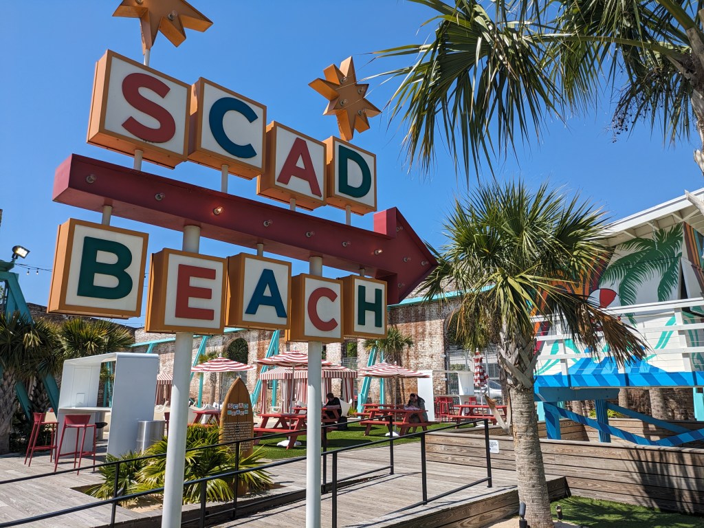Outside the museum is SCAD Beach. While I thought this was just another exhibit connected to the museum, it is actually a more permanent student space for the college. Very much in line with the Barbie movie, SCAD beach creates a beach aesthetic in the middle of the city. With sand, cabanas, lounging swings, and a full size lifeguard stand, it was easy to get swept up in the mirage. If I went to school here, I can imagine spending whole afternoons just chilling at the beach.