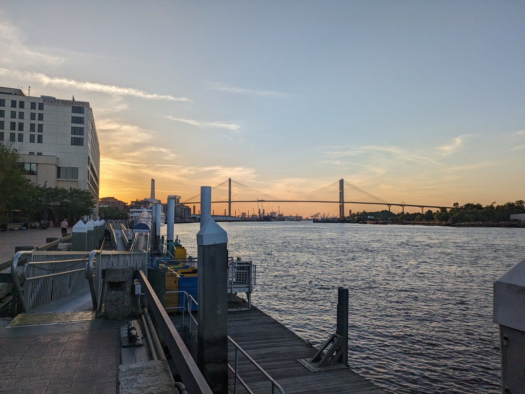 The Historic District extends all the way to the river and the tourist haven of River Street. Down the steep and sketchy stairs, River St. spans several blocks of the harbor. Tourist stores and restaurants line the bottom level of four story factory buildings and cruise and tour boats line the waters edge. The Riverwalk is bracketed by the Waving Girl statue at the East end and the Plant District at the West end. The Waving Girl Statue is in honor of Florence Martus, who greeted ships for over 40 years (1887-1931) hoping to welcome back her long lost lover.