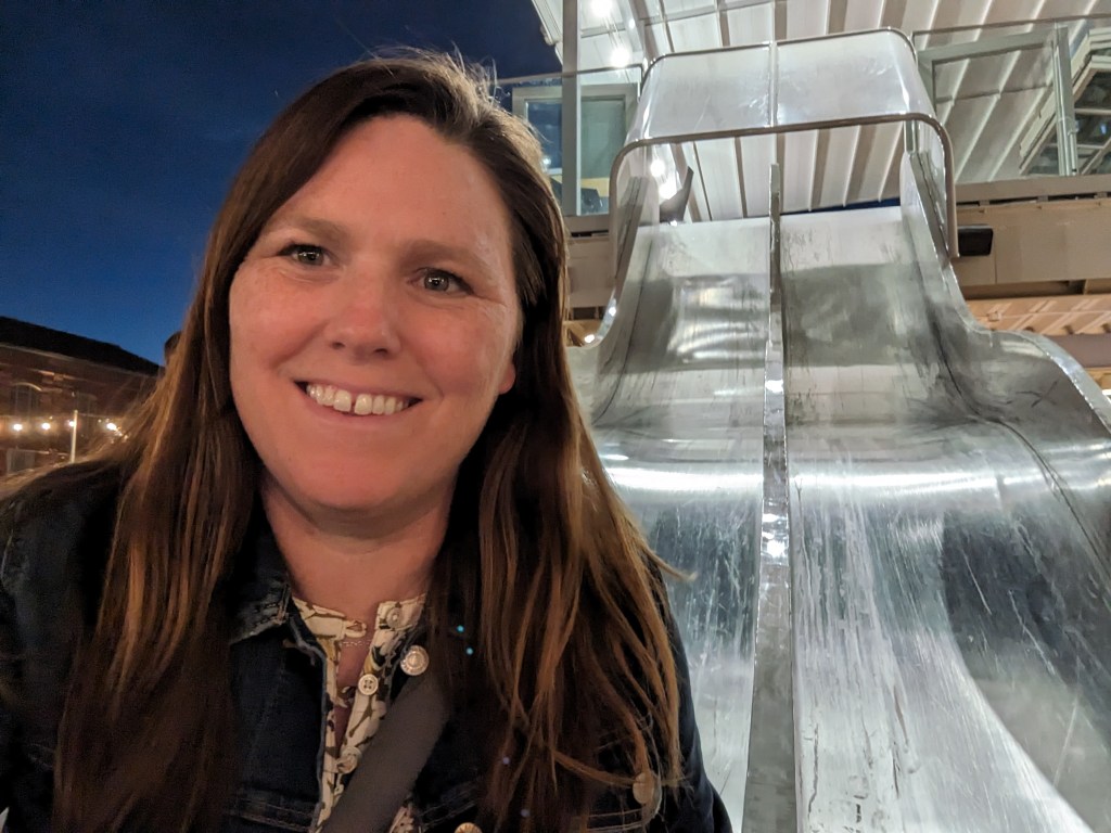 At this point in the night, I was on my quest to check out rooftop bars, so I made my way to Electric Moon and the Moon Deck. While there is a staircase that joins the two spaces, sliding down the short slide was a much more fun way to travel. It was also a nod to the adult playground vibe of the Moon Deck. Each rooftop bar I checked out had a distinct vibe, from trendy to timeless, sophisticated to casual. Most importantly, the riverfront rooftop bars were great places to enjoy the sunset, massive container ships traveling by, views of the bridge, and the night lights of the city.