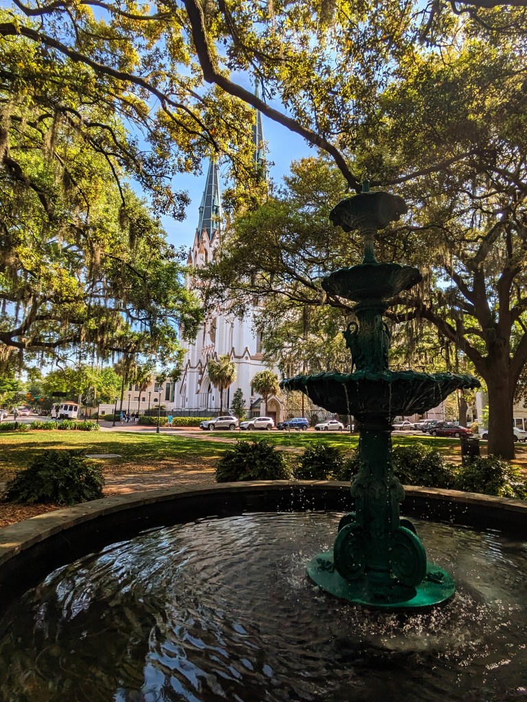 Benches and shade in the iconic Forsyth Park provided a serene atmosphere for relaxing and taking a break. Most known for its iconic fountain (installed in 1858), this 30 acre park serves as a public space for recreation, concerts, picnics, strolls, and flower smelling, and tree gazing.