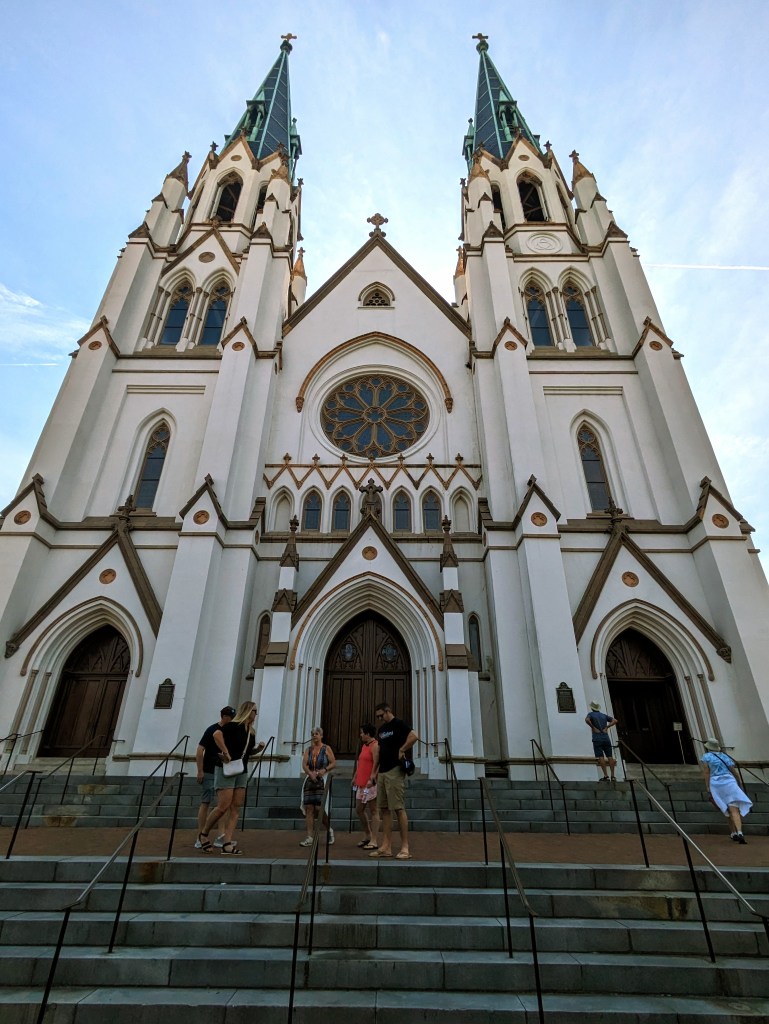 Throughout the Historic District are a series of squares that each create a space for resting and relaxing. Most are centered around a monument or fountain honoring the history of the city. From Lafayette Square – honoring Marquis de Lafayette, who aided the Americans during the Revolutionary War – the white facade of the Cathedral Basilica of St. John the Baptist rises up through the trees.