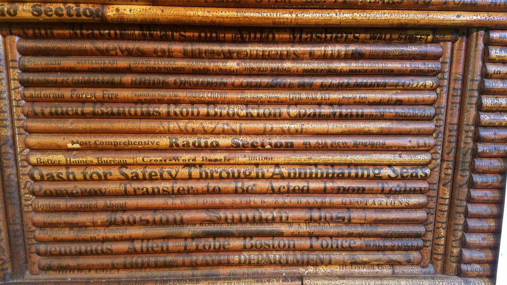 A grander example of one person’s creative mind is the Hammond Castle Museum. New England is not where you would think to find a castle, and castles are not what people were building in the 20th century. But John Hammond was always fascinated with castles, and he had the means to build one, so he did in the late 1920s. I haven’t had the chance to visit many castles in my lifetime, but I think that even if I had, this one would still stand out. Hammond was an inventor and a collector. He built his castle with the intent to turn it into a museum where he could showcase his collections and inventions. Hammond wasn’t focused on staying true to any one time period or architectural style; for instance, the great hall features artifacts and architectural pieces from 13th century France and 15th century Spain among others. The courtyard includes two 15th century French facades and stone slabs from Roman epigraphs built into the walls. I enjoyed looking at all the details of these two grand spaces. The rest of the rooms are small and cozy, but just as intricate in design and theme. Don’t miss standing in the middle of the library and talking for an odd audio experience or taking in the large mural of a fictional military battle in the Lower Den. Hammond Castle also stands at the edge of a cliff, so the views of the water from the backyard are lovely as well.