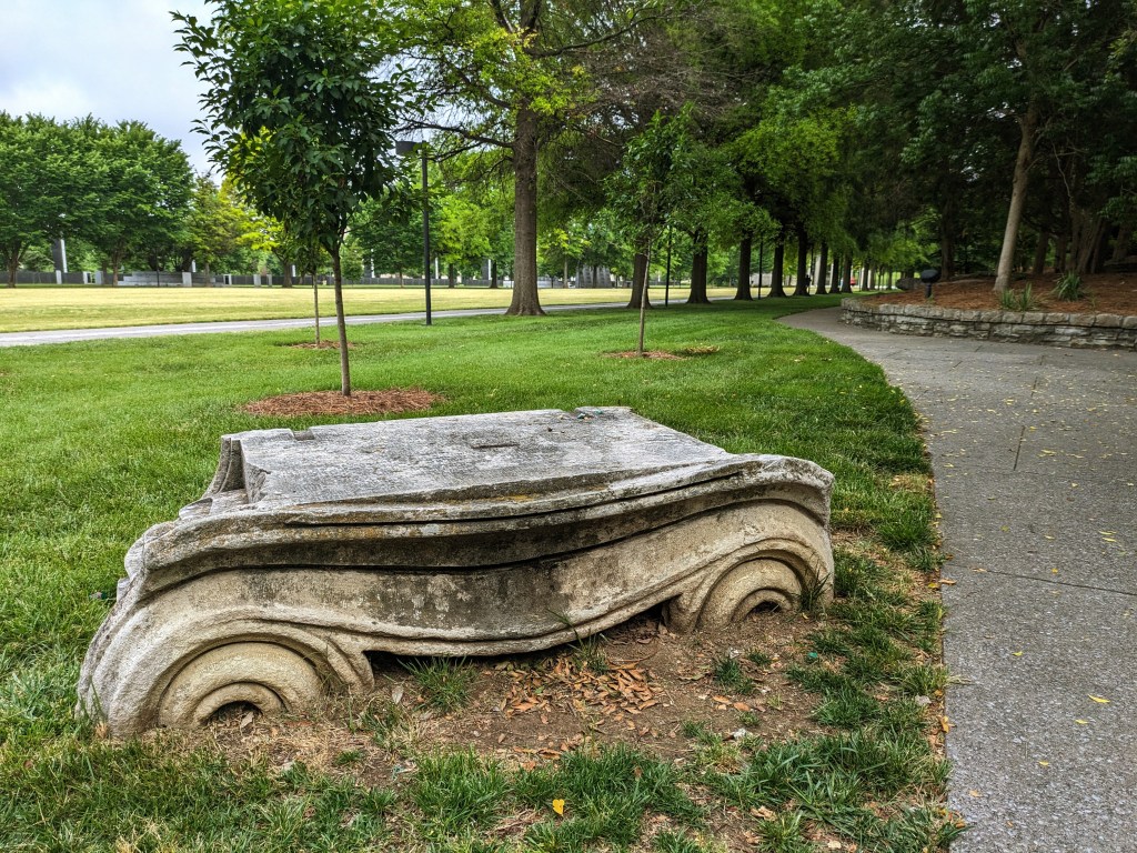 Along the Walkway of Counties as well as on the side of the new Capitol building there are ruins of the old Capitol building. These fragments of limestone were once part of the columns that made up the front of the original Capitol building. When the Capitol building was renovated in the 1950s, the columns were replaced and when the Bicentennial Mall was created in 1995, they were moved here. While these were a little random in their placement, I always appreciate places that don’t just throw away the past.