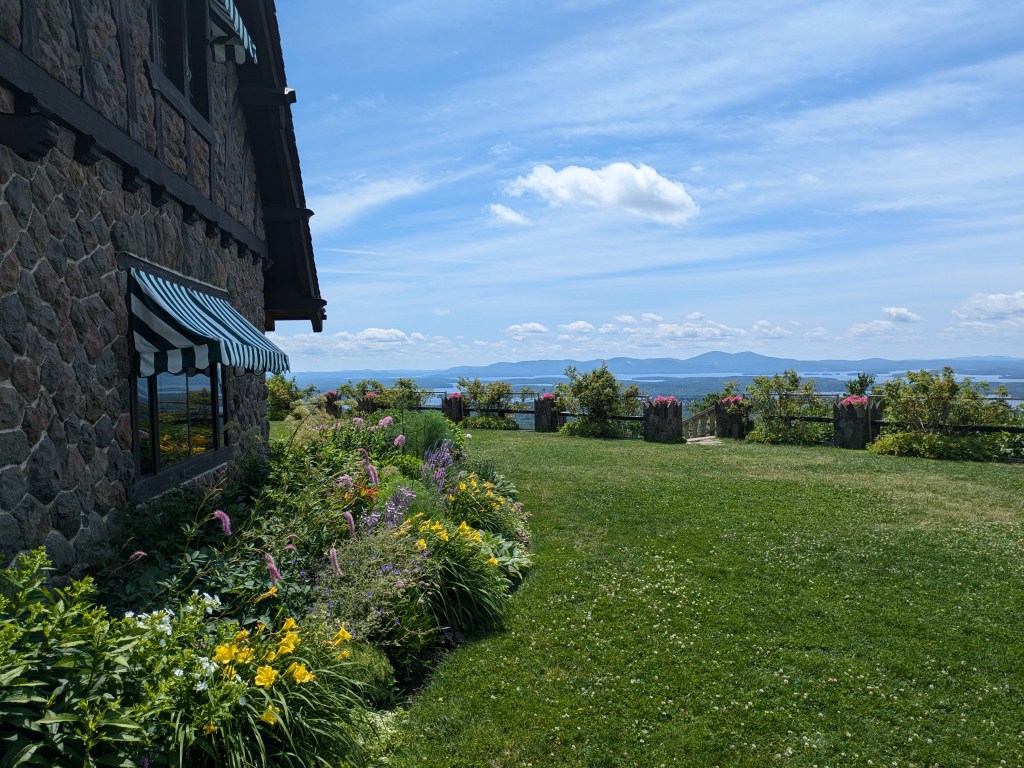 The manicured garden looks out over the mountains and Lake Winnipesaukee. I can imagine sitting out on the covered porch with a book and spending the day taking in the views and the breeze.