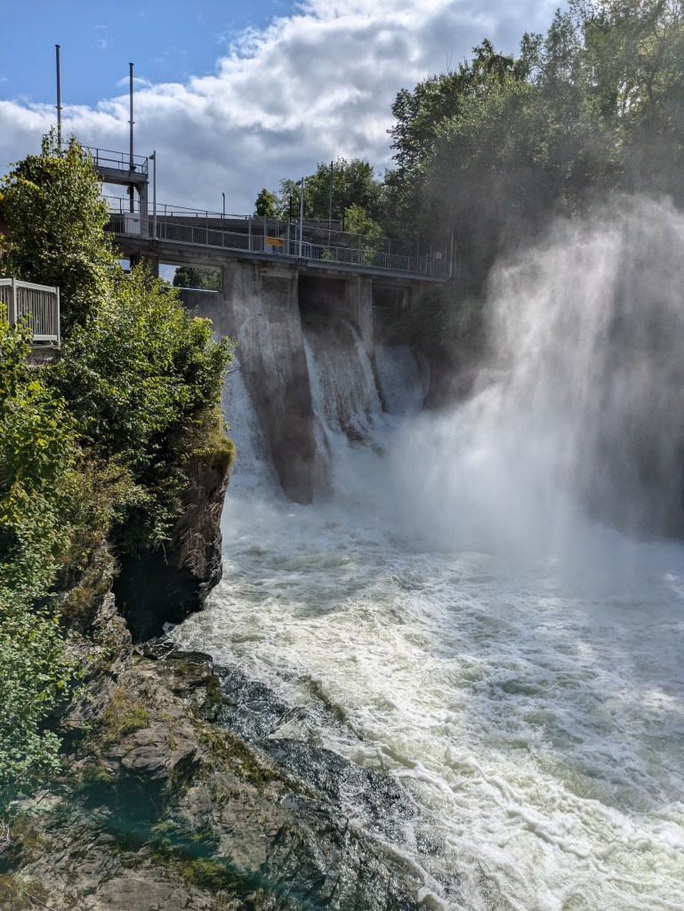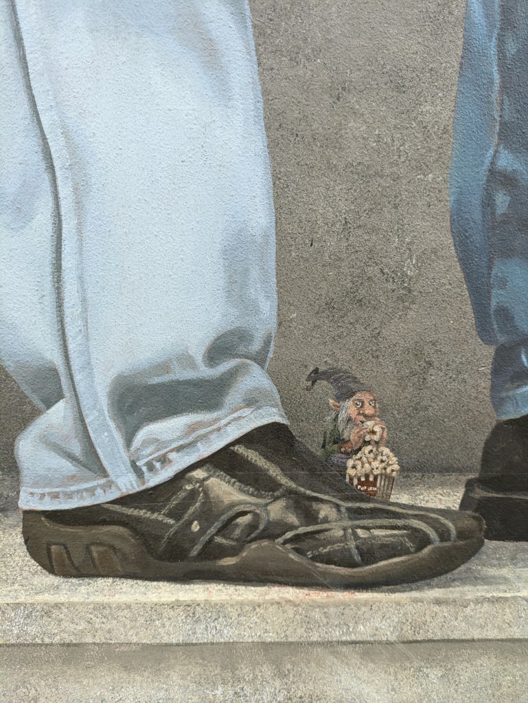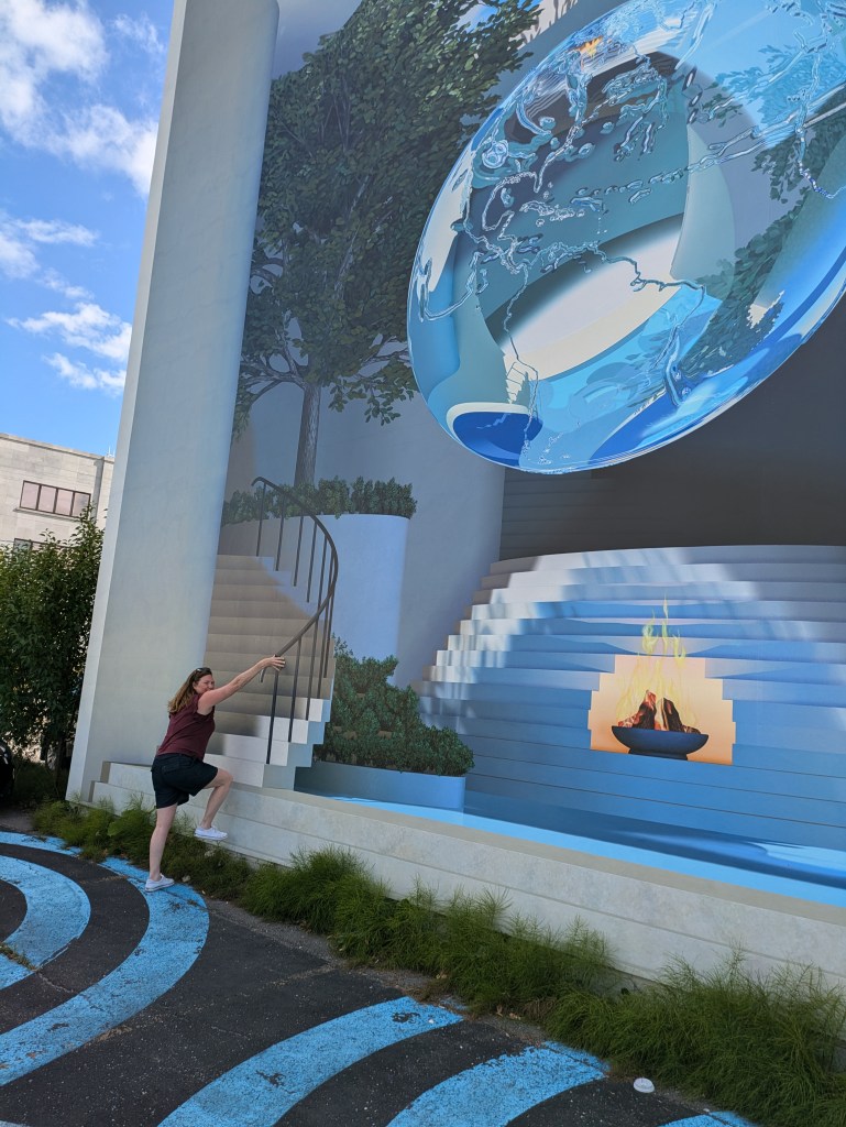 Just after crossing the border, we stopped in Sherbrooke for their Mural Circuit. If we had completed the whole circuit, we would’ve seen 18 murals along the 2.5 mile walk, but we did about half of it. While I was hoping that this walking trail around the city would bring us by some cute storefronts and buildings, this section of the town felt pretty random. However, it did bring us down to the raging river and power plant, which I enjoyed experiencing. As someone who grew up on Where’s Waldo, I also enjoyed the scavenger hunt they created in each of the murals. The murals were mostly the same in style, showcasing the history of the area; however, my favorite one was their trompe-l’oeil piece where the viewer becomes “The Fifth Element”.
