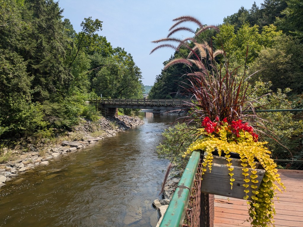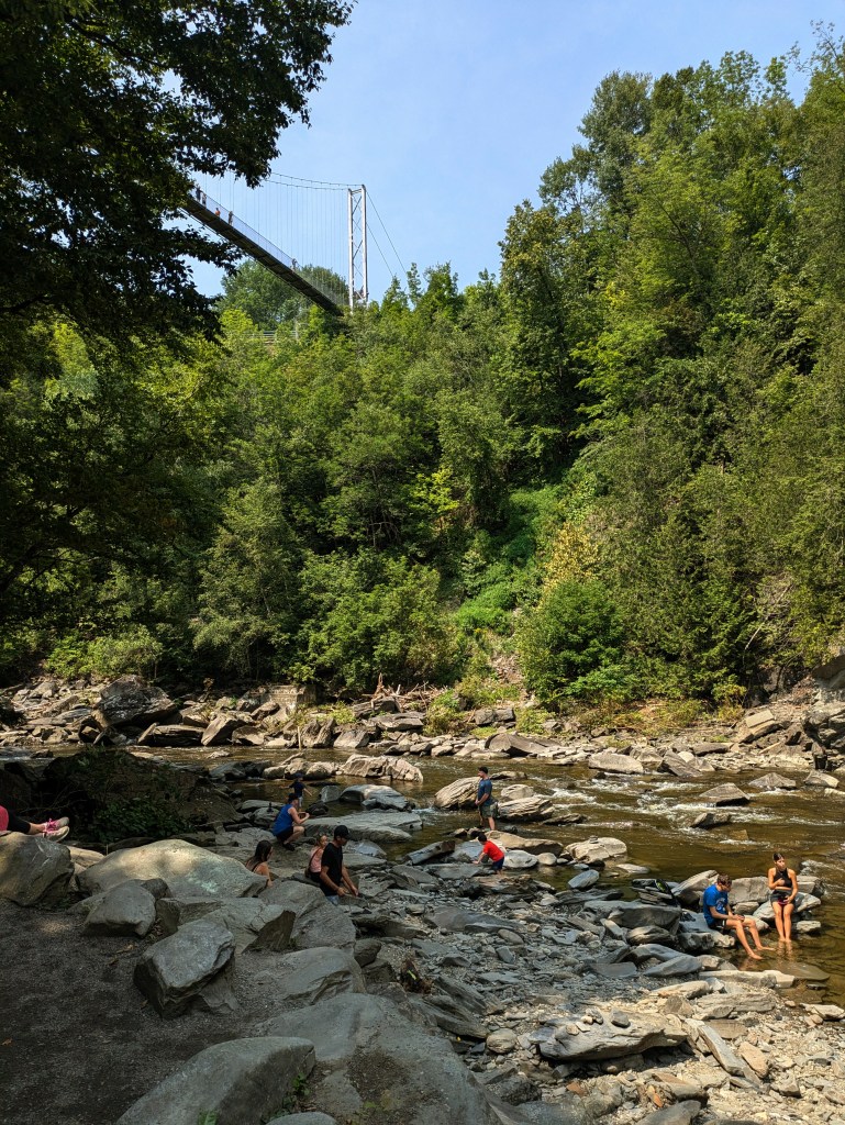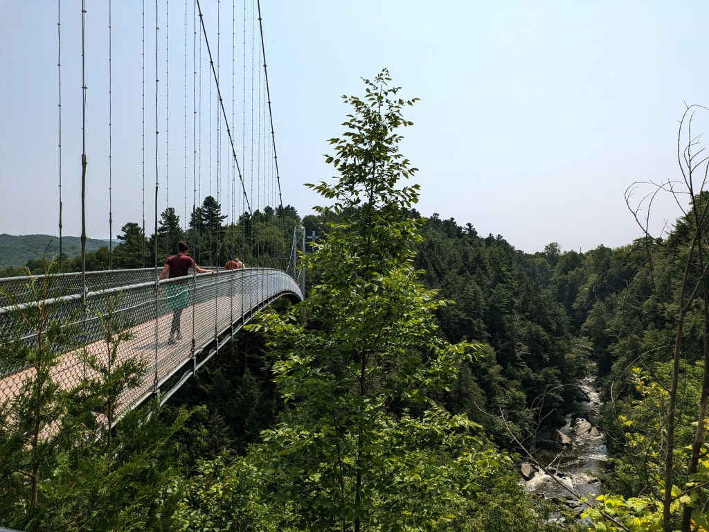 The first stop on our way back home was the Parc de la Gorge de Coaticook. I picked this stop because of their suspension bridge, but that was before I found out that my friend isn’t a huge fan of bridges over water. We had just visited the Montmorency Falls the day before, and she bravely made her way across the bridge above the falls. While I didn’t know how this bridge would compare, I did know that it is the longest pedestrian suspension bridge in North America, so I gave her the option of changing our hike. Still, she’s an adventurous soul, and she decided to take on the challenge. Even though this bridge wasn’t as high up or over a raging waterfall, I found it scarier as it bounces with each step you take – even more so if someone else is nearby. Although I’m not scared of bridges, I felt a little wobbly after the crossing. However, the vista of the gorge from the bridge was beautiful and the path meandering along the river below was nice to walk along. If we had more time, I would’ve loved to sit with my feet in the river to take it all in.