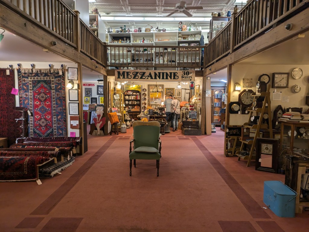 Up the hill from Cargill Falls is the main street of Putnam. At the center of the shopping area is the massive Antiques Marketplace. Antiques Marketplace offers over 130 vendors in its four story space. The first floor is organized in protective glass shelves, while the upper floors are sectioned off into small cubicles. The surprise mezzanine on the second is a fun architectural detail. The marketplace offers everything from military gear to fine china. It was overwhelming – but in the best way.