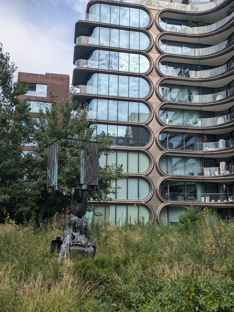 Next to Hudson Yards is easy access to one of my favorite places in the city: The High Line. Since it opened in 2009, I have visited it on every trip I take to the city; and every time I go, it seems that they’ve added something to it. Whether it’s the extension around the Hudson Yards transportation hub or the art installations along the 1.5 mile walkway, each time I enjoy both the familiar and the new. The architecture of the benches, pieces of the original train tracks, site specific art installations, and graffiti facades of the surrounding buildings add depth to the walk. While the ornamental grasses, flowers, and shade trees soften the hard edges of the city. Raised above the streets of the city, the High Line gives a different perspective of the city. And while it feels a little voyeuristic at times, looking into the living spaces and studios along the walk also feels like I’m experiencing life beyond the curtain.