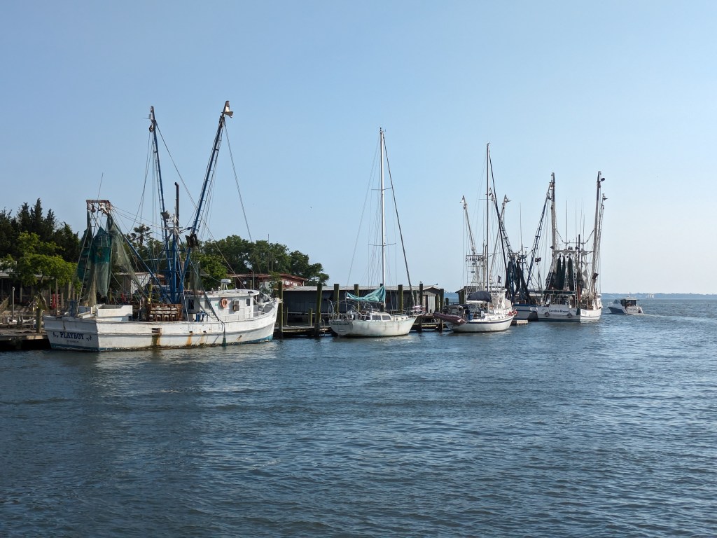 Some boats parked along aptly named Shrimp Boat Lane let off their load of freshly caught shrimp and fish. As the fishermen were cleaning their fish, they were talking to people about the process, offering small bits of fresh fish, and making the pelicans waiting below very happy. I also found out that scenes from the TV show Outer Banks were filmed here – something that I made sure to tell my colleague who is a fan about.