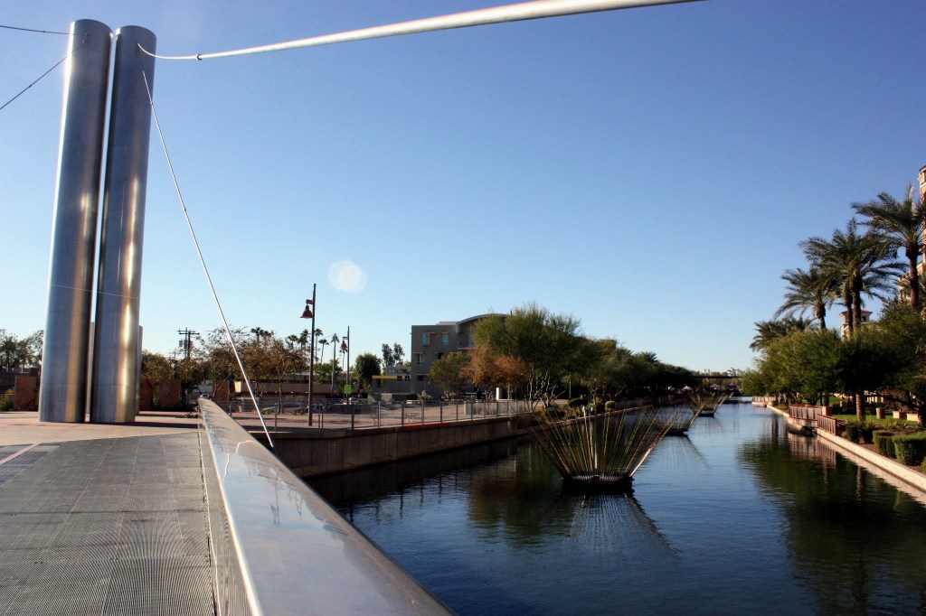 A walk along the Scottsdale canal was a nice way to get away from the crowds a little bit and enjoy the play between water, nature, and architecture. The Soleri Bridge that spans the canal is a work of art in itself. Designed by Paolo Soleri, the bridge was constructed at the true north axis so it can also serve as a solar calendar. Paolo Soleri is also the mind behind Arcosanti (see “Immersing Myself in Arizona” for information). The bridge also includes a large plaza for community gatherings, so the city often hosts markets and festivals around this spot.