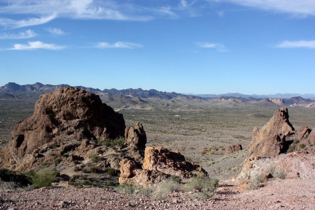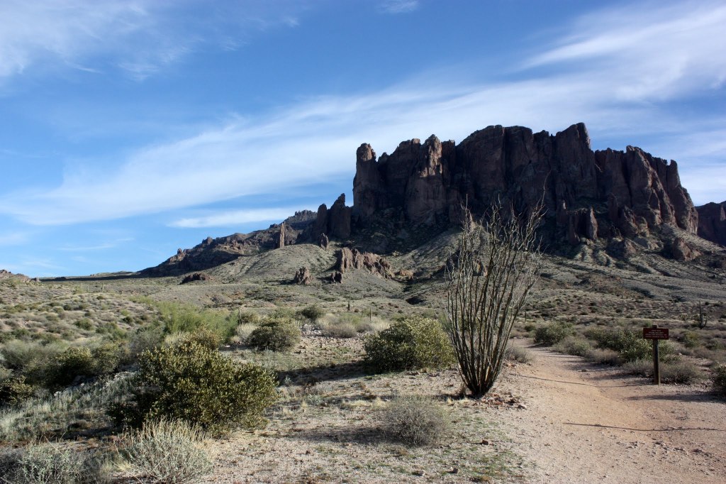 Another nice hike just to the west of Phoenix is Lost Dutchman State Park, which includes trails around Inspiration Mountain. The 2 ½ mile Treasure Loop trail went part way up the mountain to a picnic ledge for some lovely views of the area. Be sure to bring a hat and sunscreen because there is very little shade on these desert hikes.