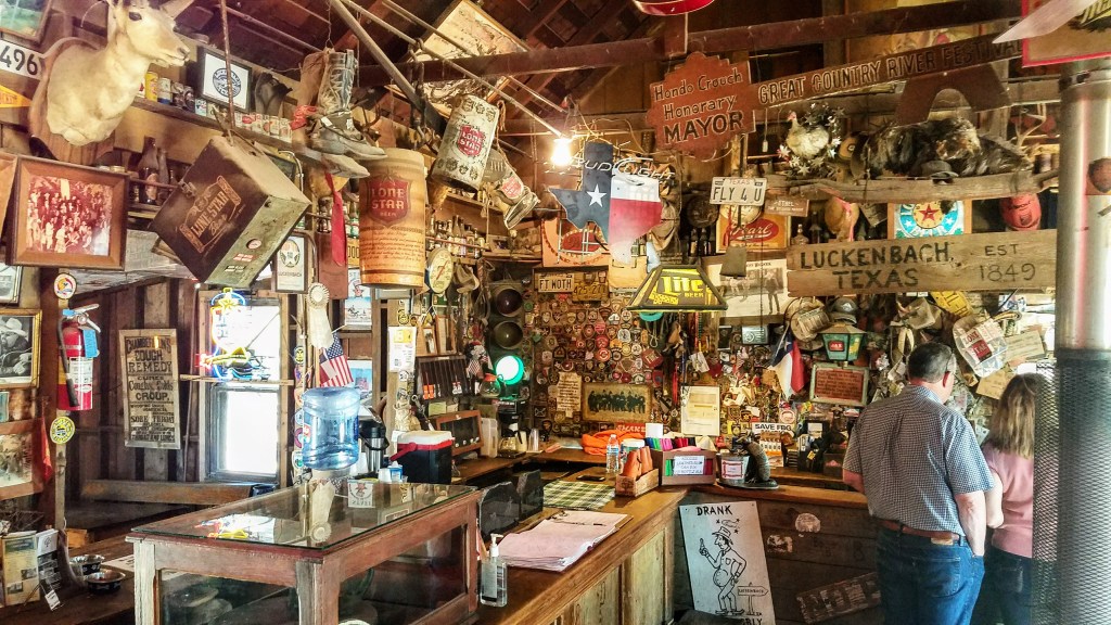 Leaving Austin, my first planned stop was Pedernales Falls State Park; however, as I mentioned above, sometimes there are surprise stops to make and my first one was in the small town of Dripping Springs. My trip to the area was before Covid, and from what I’ve heard Dripping Springs is now a bustling Austin suburb. Still, it looks like they’ve kept the historic charm that drew me into the area. Some of the historic buildings along Mercer street date back to the late 1800s. While some stores are filled with wares for local farms and ranches – anyone want an antler dog chew? – others offer vintage charm and unique jewelry and clothing.