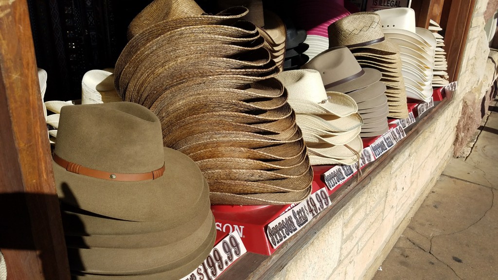My lodging for the night was in the cute German influenced town of Fredericksburg. The town has done a nice job making the main street attractive – with hanging art installations along the sidewalks and specialty stores that cater to the local wares like hot sauces and stetson hats. At one end of the street is Marktplatz park that honors the peace treaty with the local Comanche Nation.