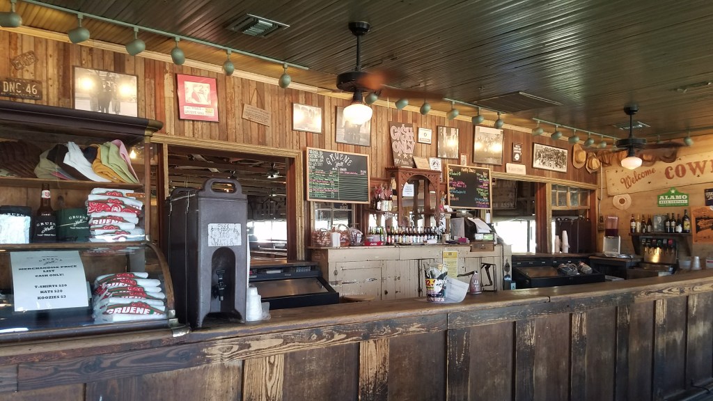 I was saving my appetite for lunch in the teeny tiny town of Luckenbach. “Everybody’s Somebody” in Luckenbach since the town’s largest population was 492 in 1904s, and since has been a ghost town – in 2024 the population sits at a measly 3 people. Waylon Jennings made the town a must see destination for country fans with his 1977 song, “Luckenbach, Texas (Back to the Basics of Love),” and the town has continued to thrive around music culture. Dozens of picnic tables set under large shade oak trees give afternoon guests a comfortable place to enjoy the daily live music. The rustic large barn hosts weekly dancehall events. With all of the tourists and locals flooding into the town on a daily basis, it feels anything but a ghost town.