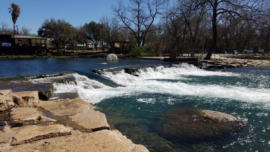 After gorging myself on BBQ, finding the relaxing riverside space of Rio Vista Park was a welcome surprise. While I didn’t have time to join people tubing down the river, I did wade in the clear water to cool off. The large roots of the trees on the banks and the cascading water over the large river rocks provided a beautiful vista for an afternoon visit.