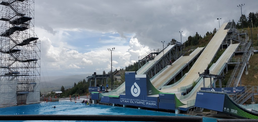 As the rain set in, I ended my day trip at the Alf Engen Ski and Winter Games Museum and practice area. What was once the 2002 Winter Olympics headquarters has been turned into a small museum featuring a breakdown of the 2002 Winter Olympic events and winners, interactive displays to showcase what it takes to complete a ski course/bobsled ride, and costumes from the opening ceremony. There is also an observation deck to watch skiers practicing their ski jumps. Even in the rain, skiers were out there twisting and flipping in the practice swim tank below.