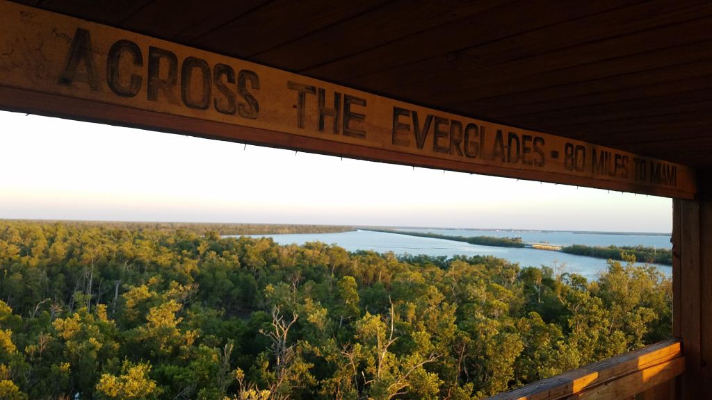 Everglades City is the western gateway to Everglades National Park. I drove to Shark Valley Visitor center where I rented a bike to make my way out to the Shark Valley Observation Tower. The visitor center also offers tram rides out to the tower for those who don’t want to complete the 15 mile round trip ride. However, biking out there allowed me to stop and see the wildlife at my own pace. The small water moat between the paved path and the wilderness was rife with alligators and birds. Even though it was a little scary to be so close to the alligators, they seemed content to sun themselves on the opposite bank and cool themselves in their waterspace. I luckily didn’t see any on the path itself. Great blue herons, snowy egrets and many more species that I didn’t know the name of sat and squawked among the branches.