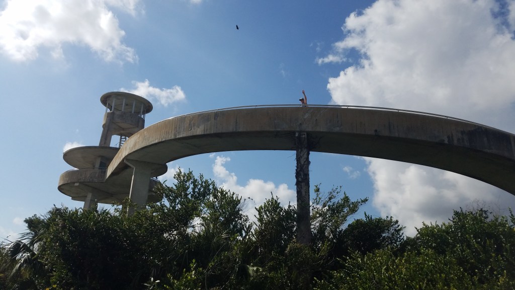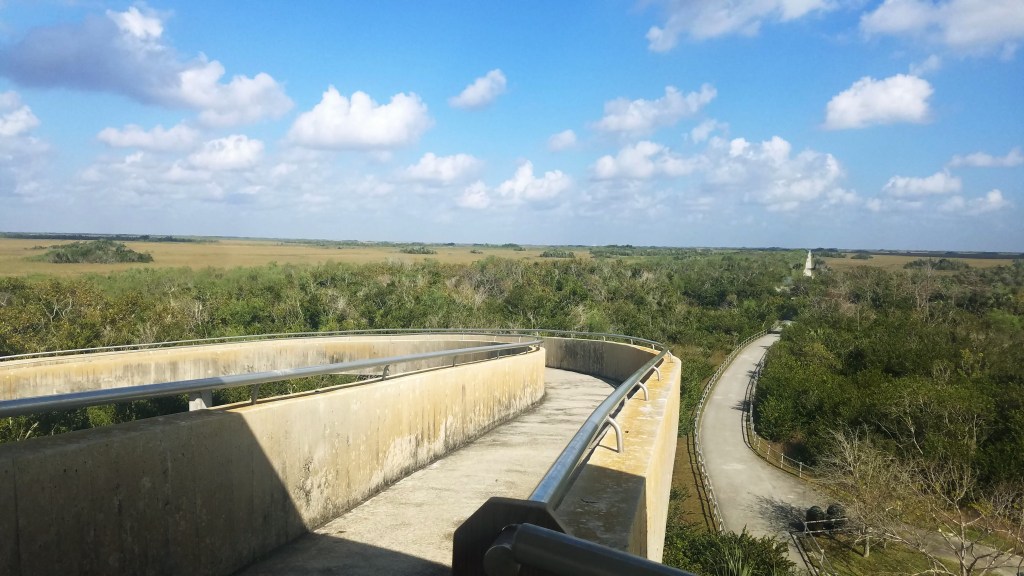 The observation tower was easy to spot as the endpoint of my bike ride. The large concrete ramp leading up to the 45 ft tall observation tower sets a striking contrast to the flat land of the Everglades. From the top, it’s easy to see how vast the wilderness is. Although 15 miles of biking can feel daunting in the Florida heat and sun, the paved and flat path made it easy to complete. Just make sure to bring lots of water and sunscreen.