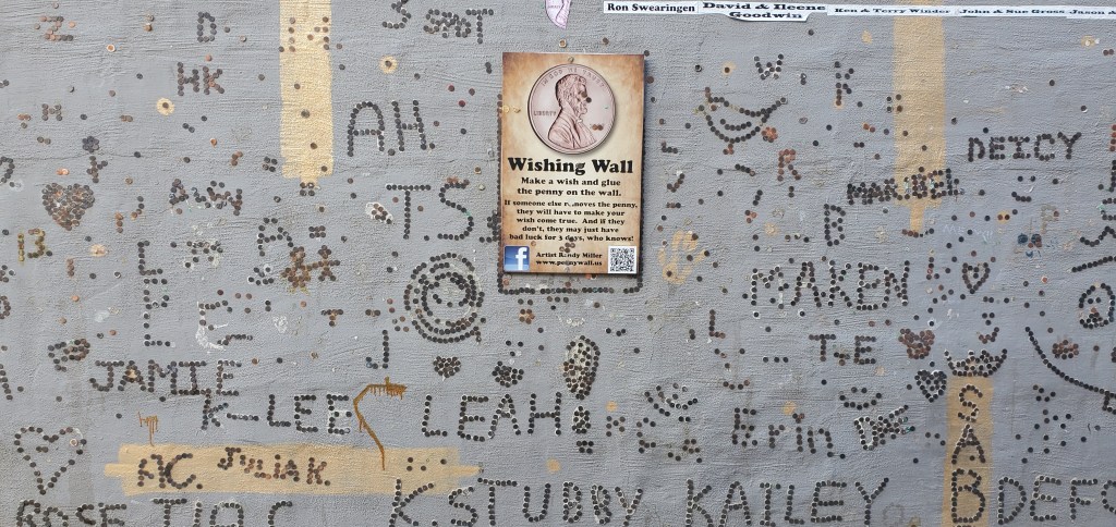 I stopped at the small city of Mountain Home as I left Boise for Twin Falls. The downtown area doesn’t have a lot going on, but they have named themselves the Mural Capitol of Idaho. Local art teacher Brenda Raub and the rest of the Community Canvas organization have worked to bring the city to life with over 200 murals in the town. Walking around the downtown area, murals adorn most of the sidewalls and alleys of the buildings. The most famous of the murals is the Wishing Wall, which invites people to paste pennies to the wall and make a wish. People have spelled out their names and created interesting designs on the wall. I picked up a morning treat at a local bakery and enjoyed walking around downtown before making my way to the big stop for the day.