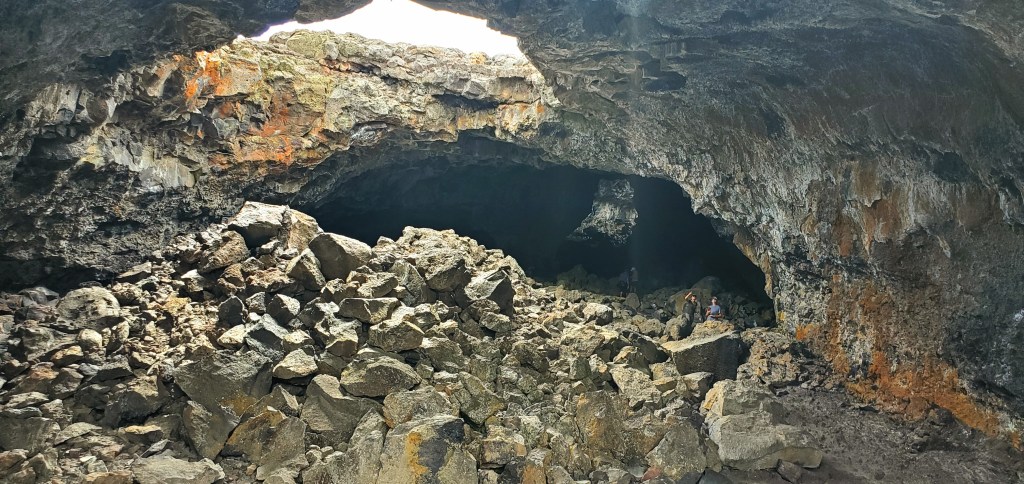 At over 30 feet high, with skylights bringing in the light, Indian Cave doesn’t have the claustrophobic feeling that I expect to have within caves; however, it did require me to scramble over rocks over the course of the quarter mile trail and climb up to exit through one of the larger skylights. The cave is named after the stone rings and stone structures the Shoshone tribes left behind. The Shoshone tribes used these caves for shelter and a source of water. Craters offers a few other lava tube caves available in the park, though some are closed right now and others require equipment and headlamps to navigate.