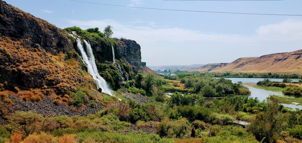 On a hot summer’s day, Thousand Springs State Park sounded like a refreshing and beautiful way to spend some time. I guess I shouldn’t have been surprised – but I was – at the sheer number of small waterfalls I passed during my drive into the park. In some places there were so many different waterfalls that it looked like a blanket of water. The views and sounds of the flowing water coming straight out of the side of the mountains set a lovely backdrop.