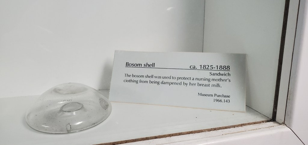 Historically, Sandwich is best known for the Boston and Sandwich Glass Company. For much of the 1800s, glass produced in Sandwich found its way across the globe. While all of the factories closed by the 1920s, the Sandwich Glass Museum honors its lasting legacy. The exhibits in the museum outline the three centuries of glass-making as well as featuring the local glassware. The display items even extend to the bathrooms where I was shocked to find baby paraphernalia made out of glass. In both of my visits, there has been a glassblower creating pieces live in the lobby of the museum, which not only gives visitors the step by step process of creating a blown glass piece but also to ask questions about said process.