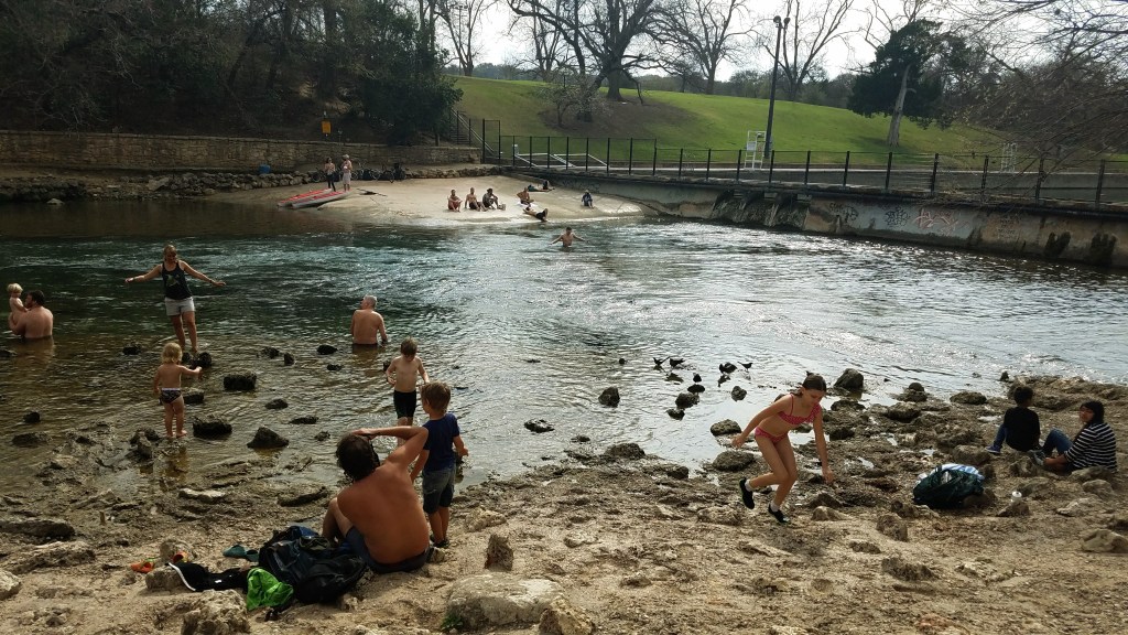 I visited the city in February, which while warmer than my homebase in Massachusetts, wasn’t quite warm enough for a proper swim in Barton Springs. However, because the water is fed from four underground springs, the crystal clear aquamarine colored water maintains a year round temperature around 70 degrees. Thus, there were some people wading in the water looking for the the Barton Springs Salamander (Eurycea sosorum) that can only be found in this body of water. The area is divided into a three acre concrete swimming area and the natural creek section. Located in the larger Zilker Park, the grassy hillsides on either side of the springs provide space to sunbathe and find shade making this a perfect place to spend an afternoon.