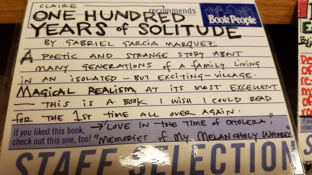 No matter what city or town I visit, if there is an indie bookshop, I can’t help but stop in and browse. While the size of BookPeople’s store makes it seem like a chain store at first, as soon as I saw the handwritten recommendation cards along the shelves, I knew that I was in the right place. I also love the marquee on the outside that advertises their upcoming author talks as if they were movies.