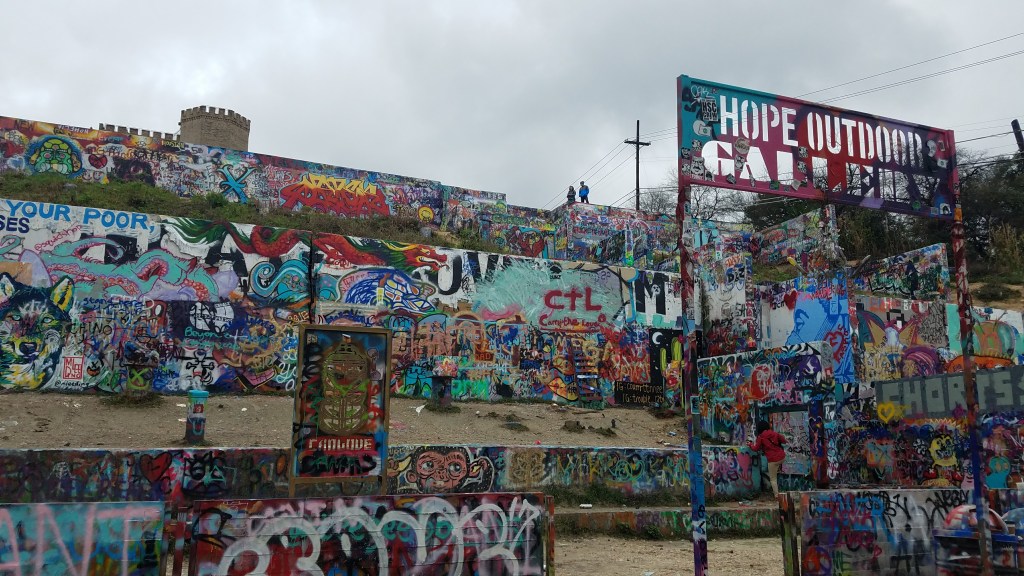 Austin is known for its murals, and while most are accessible from the main shopping streets around the city, the HOPE (Helping Other People Everywhere) Outdoor Gallery is home to a more transient group of murals. What was once a planned condo development has been turned into the only art park in the country. When I visited, I was able to walk around and appreciate the completed works as well as watch new ones being painted. It’s a vibrant and chaotic scene that made me smile.