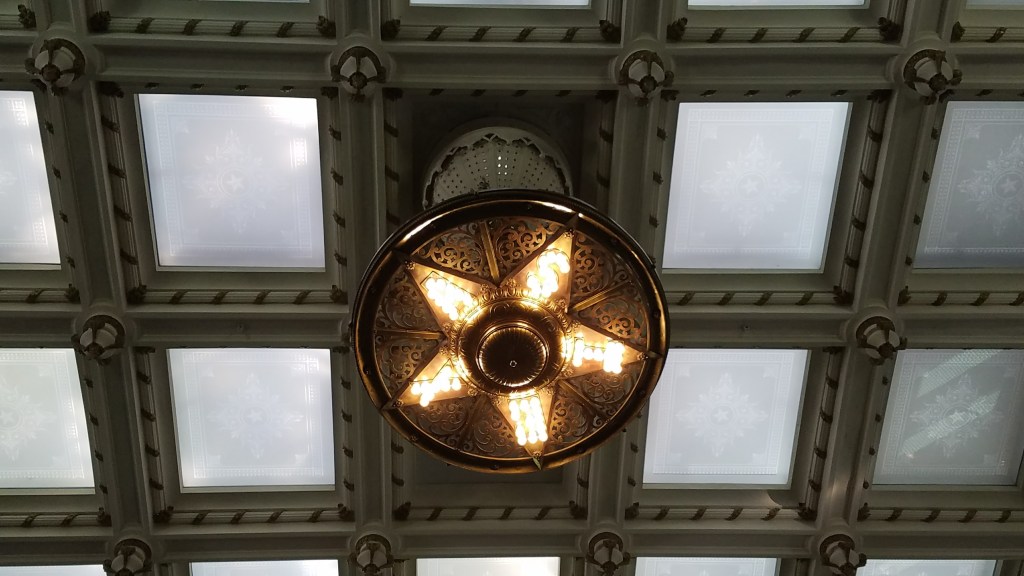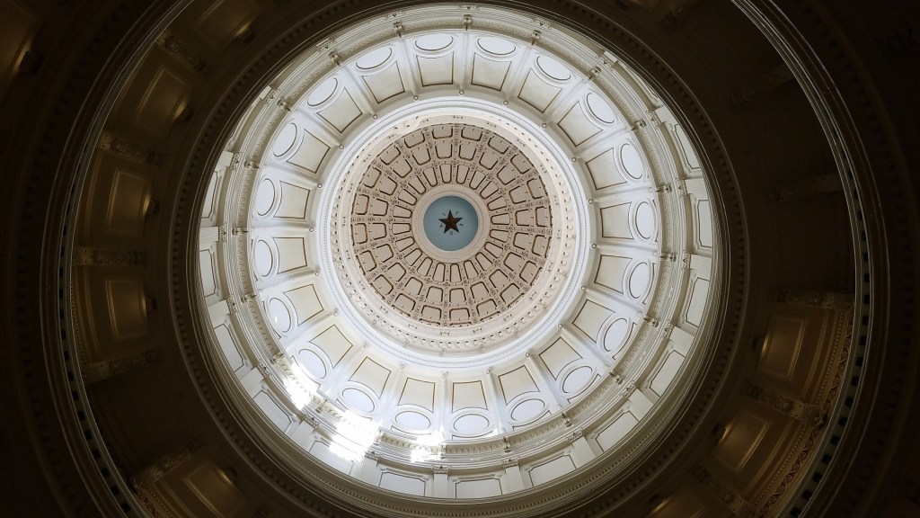 Austin is the capital of Texas, and the massive capitol building (taller than the US Capitol in Washington DC) captivates the city. Constructed with Texas “pink” granite, the Italian Renaissance inspired architecture provides intricate details from both outside and inside the building. While others might be drawn to the sculptural details of plaster work and ornate custom made bronze hardware, it was the star designs that fascinated me. I’ve always been a fan of stars – if I was to get a tattoo, it would be of a star. From the floor of the lobby, light fixtures, backs of the chairs, ceiling of the dome, and fence posts, the stars were everywhere.