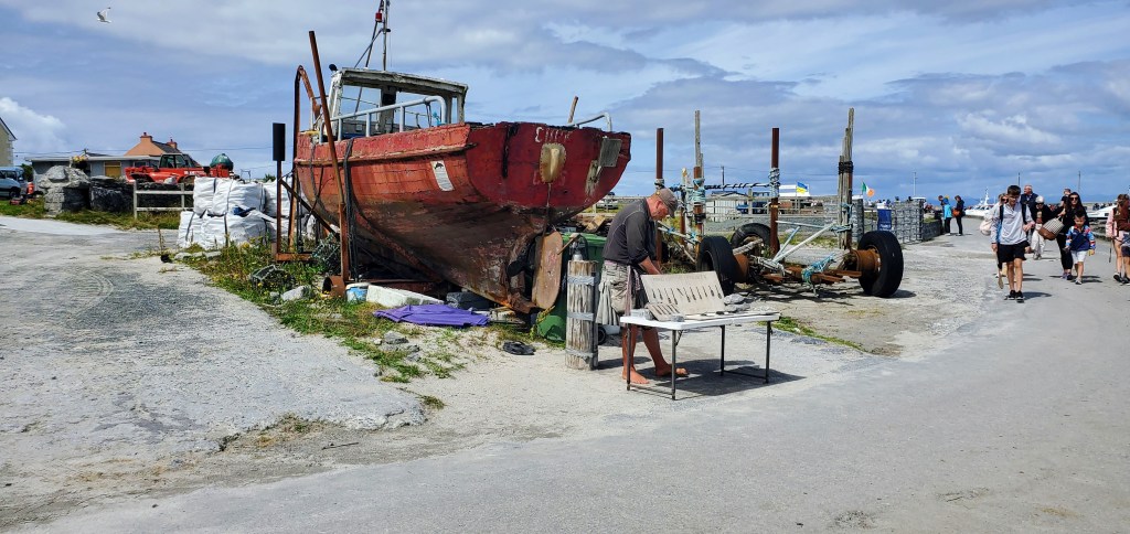 As soon as I arrived in Doolin, I dropped off my luggage at my accommodations and made my way down to the harbor for my trip to the Aran Islands. The walk down to the harbor was beautiful in itself as it passed the rolling vibrant greens of a golf course and cow pastures.  The boat ride to Inis Oirr (pronounced Inishsheer) is a quick 15 minutes, where it docks in the village of Caherard.