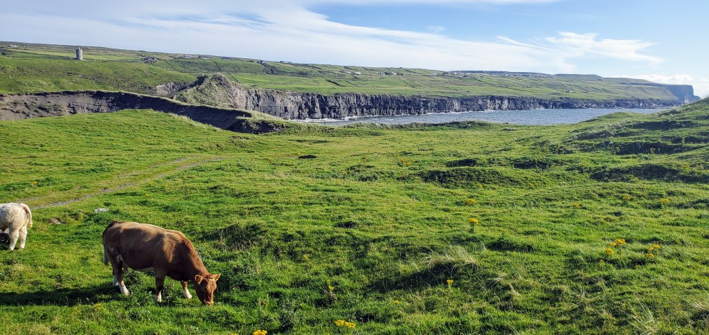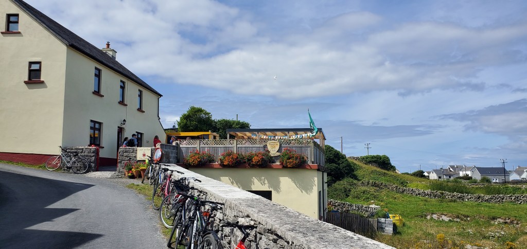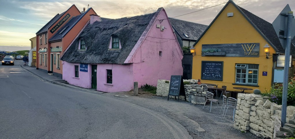 After a long day, I was happy that my lodging was just behind Doolin’s historic village center.  Over the stone bridge that traverses the small Aille River, about a dozen colorful houses stand in a line offering a few pub and shopping options. Doolin is known for its music scene, and it did not disappoint. Live music emanated from every pub, and tables were set up outside of the pubs to create a cohesive community of people enjoying the music, food, drinks, and each other’s company.