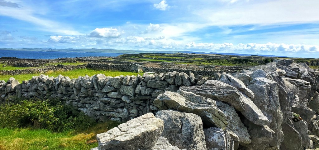 The main village center offers a few eateries and artisan shops and a pair of bike rental places. I picked one, and I was on my way. The roads are narrow and lined with the endless limestone rock walls that blanket the island. Most of these walls were constructed as a means of organizing the rocky terrain instead of serving as property lines – as one would think. If one was to line up all the rock walls of the island, they would span the entire country of Ireland.  As I biked down the roads, I couldn’t help but stop to say hello to the livestock, marvel at the construction of the dry walls, and take pictures of colorful the white limestone, green grass, and blue water vistas.