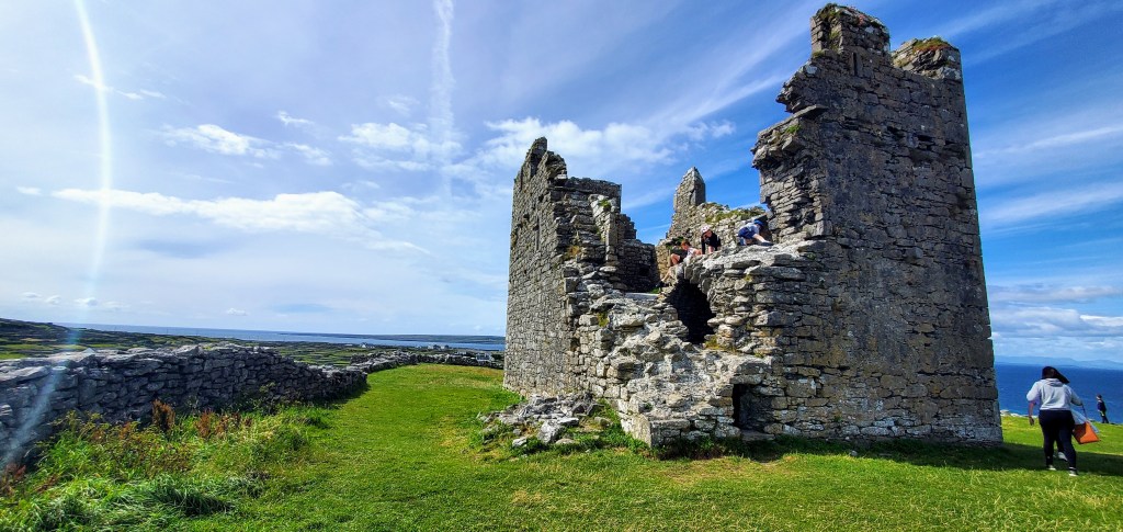 On the way back to the town, I walked my bike up to the highest point of the island. Up the steep road lies the ruins of O’Brien’s Castle. Built in 1400, the castle stood solid for over 200 years until it was taken over by the O’Flaherty Clan in 1582 and sacked by Cromwell in 1652. Besides marveling at the stone construction of the building and watching kids scramble up its walls, this site also provides stunning 360 views of the island and sea beyond.