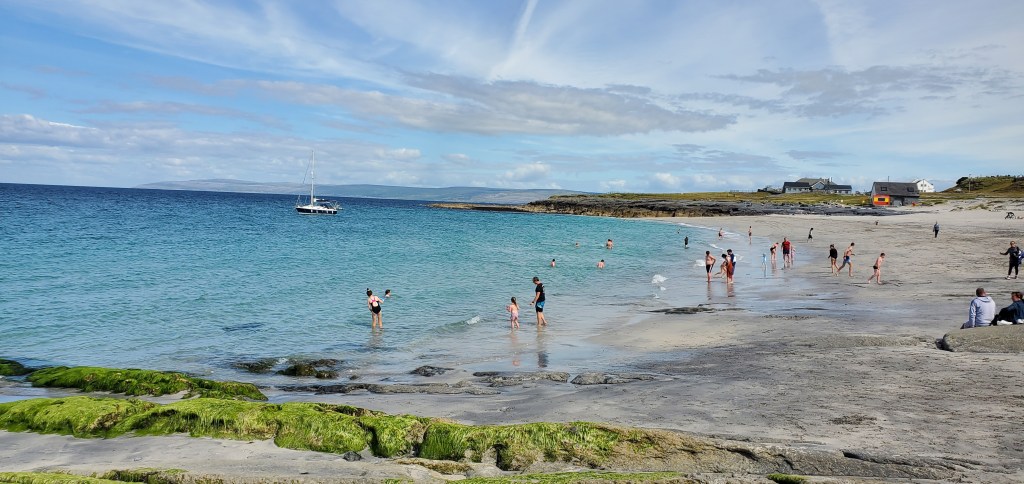 Blue Flag beach sits adjacent to the main pier and surprisingly offers soft sand and turquoise blue waters. While I visited in August, Ireland is not known for its warm temperature, so I was happy to just put my feet in the water. However, for locals this is the swimming season, so there were several people braving the cold water and relaxing on the beach.