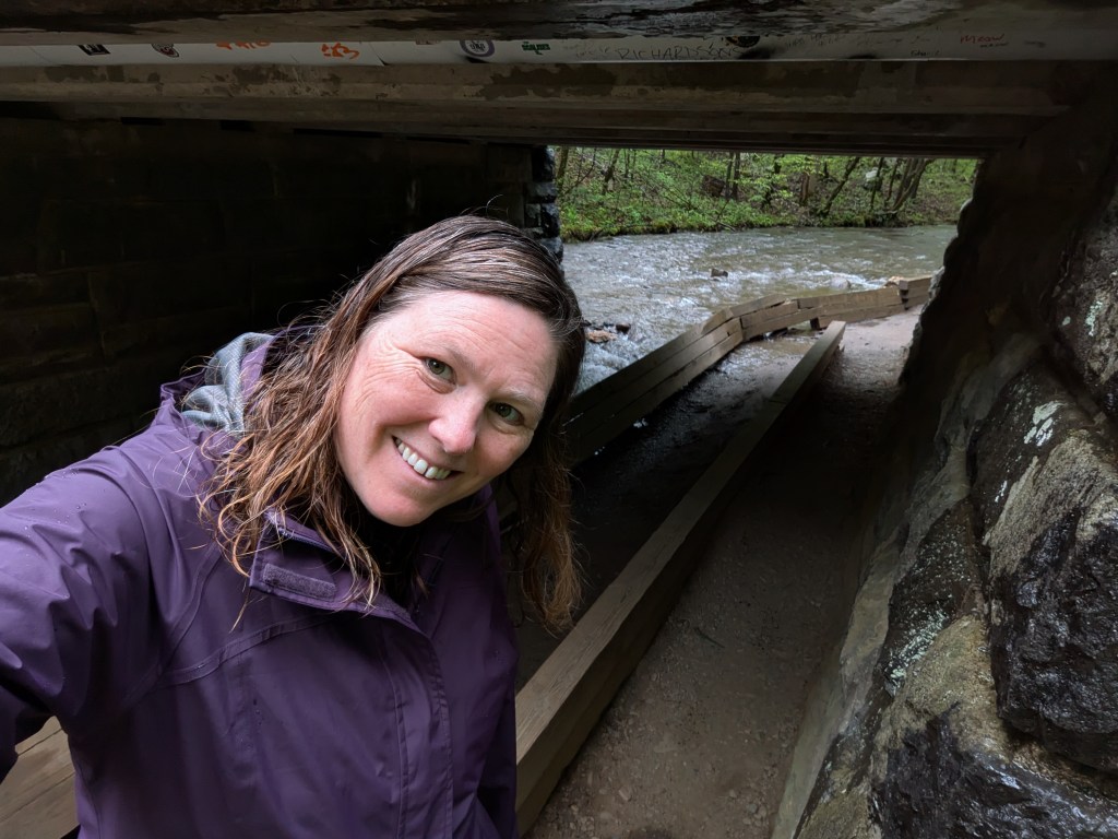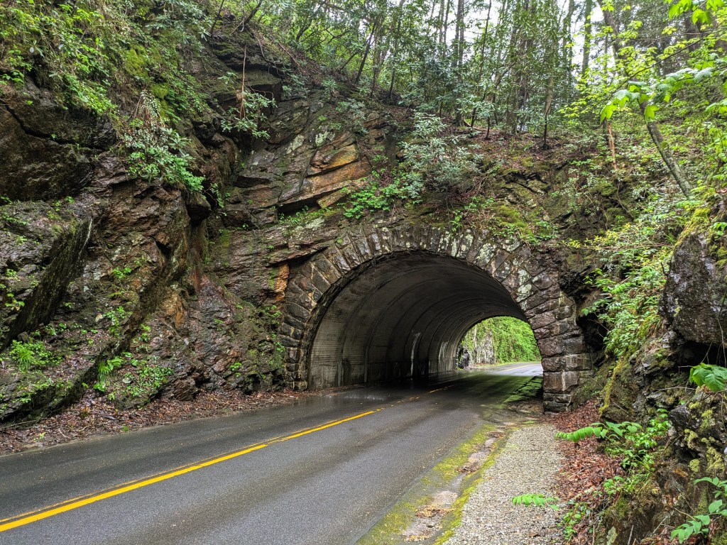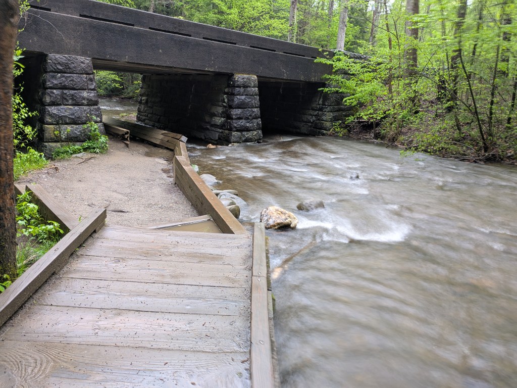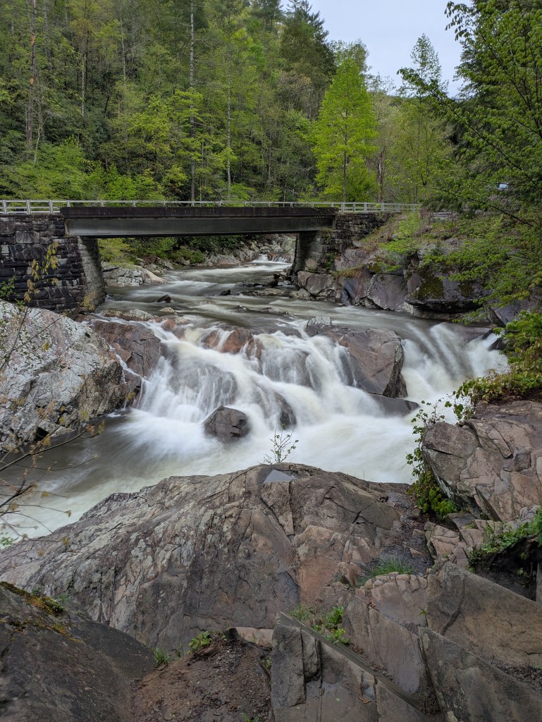 An unusual part of the walk was when the trail descended down to the riverbed and went under the road; this section felt a little like a troll bridge. The falls cascade down the rocks for 40 ft, and while they’re not as tall as nearby Laurel Falls, Laurel Falls were closed for the 2025 season.