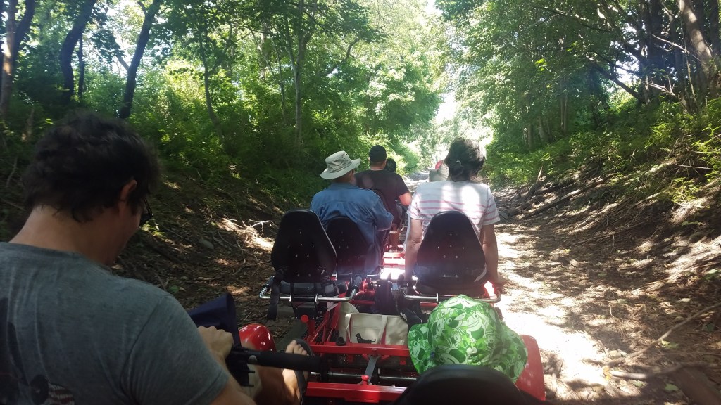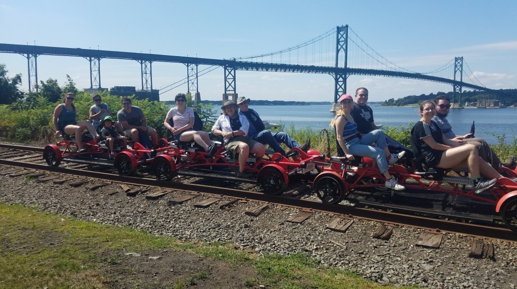A few years ago, my friend booked us a ride on the Rail Explorers. Set along the Old Colony Railroad tracks that have been around since the 1860s, the 6 mile (round trip) ride parallels Narragansett Bay and offers views of Jamestown, the bay, and the Mount Hope Bridge. The cars are set up in twos or fours and are also able to be attached to each other so that groups can travel together. With multiple cars together, it’s easy to sit back and let someone else in the group do the hard work of pedaling our trip, but it’s also fun to contribute to the cause.