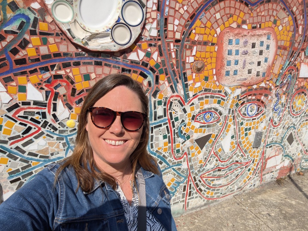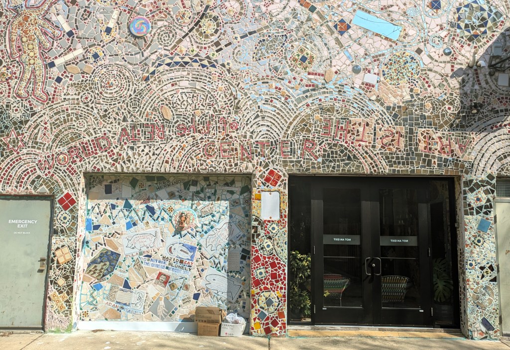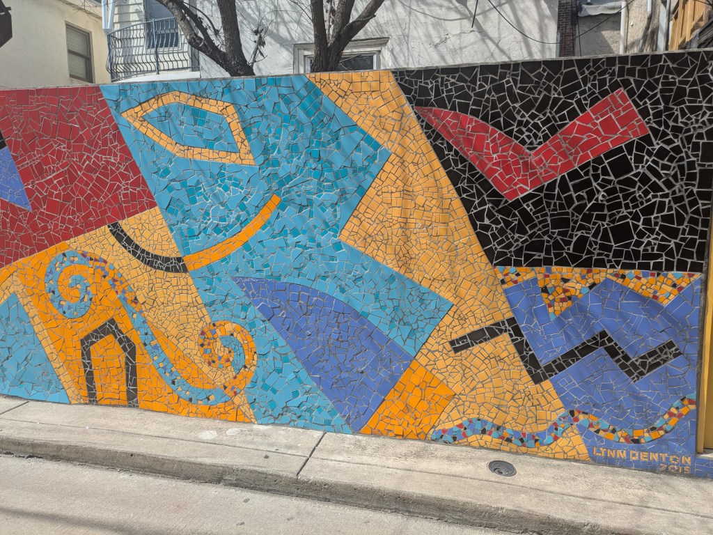 I was visiting the area with a friend who lives in Philadelphia, so one of the things that he made sure that we did here was revisit his favorite Philly Cheesesteak place. I know that there are always debates about which place is the best in the city, but I will just have to take my friend’s word on his choice. The casual art deco diner vibe of Jim’s South St. felt right. With half the menu being cheesesteaks, it was easy to see that this place knows what the fans want. We grabbed our subs and headed upstairs to look out over the street while we diner – just an FYI that this is a cash only establishment. During the rebuilding from the 2022 fire that devastated this block, Jim’s expanded their building and found some of famous local artist Isaiah Zagar’s earliest mosaics embedded in their walls.