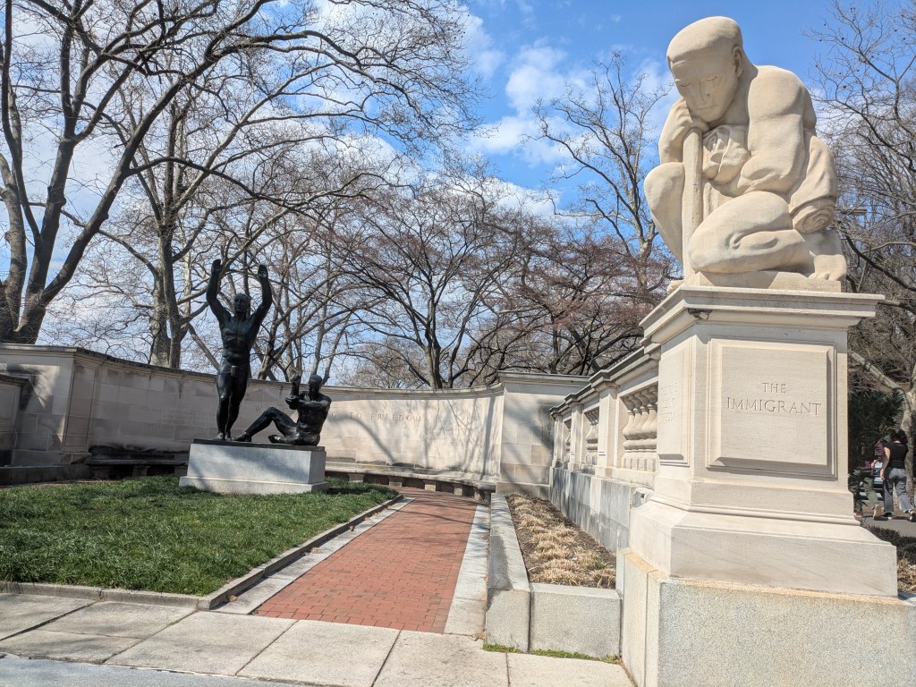 We walked a small section of the path to the Ellen Phillips Samuel Memorial. Made up of three terraces, the seventeen sculptures (built between 1933-61) in this memorial represent the creation of the United States. From Western Expansion and the building of a democratic nation to the inner energies of the country, the sculptures were set to honor the philanthropic legacy of Ellen Phillips Samuel.
