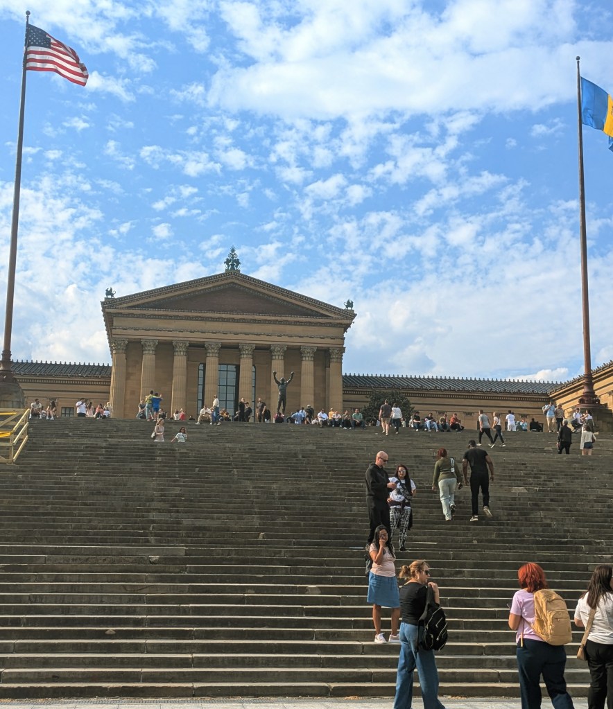 Set up on the hill above the river, is the dominating Philadelphia Art Museum. While I didn’t have time to check out the inside of the music, I enjoyed walking the grounds. One of the largest art museums in the country, the 1928 building is composed of three linked Greek temples. Designer Julian Abele was inspired by his travels to Greece.