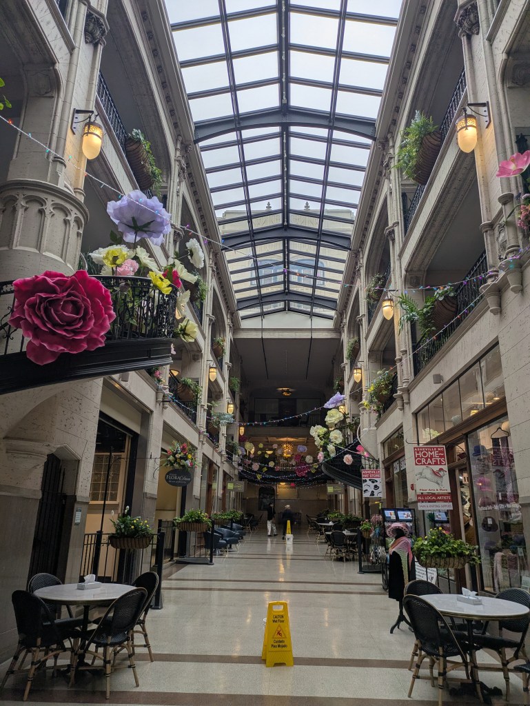 The first one I visited was the Grove Arcade. Designed by Asheville entrepreneur E.W. Grove as the “most elegant building in America” in 1928, The Grove Arcade offers five stories of shops, offices, and residents. The glass ceiling and the stone work invite you to look up. On the weekends, vendors also set up outside the building in vintage cart style stalls.